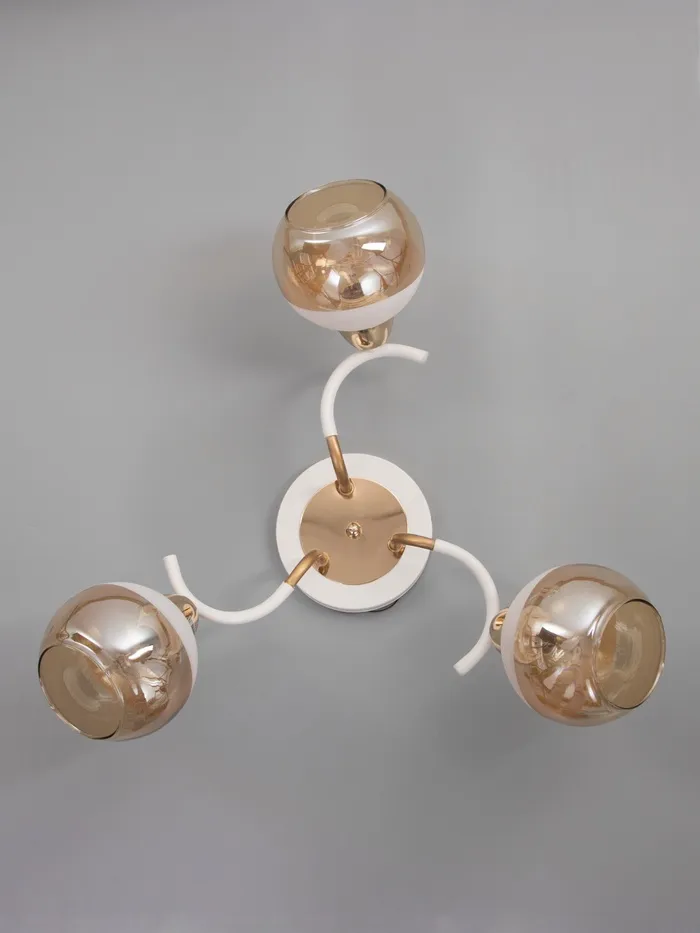 Станет изысканным дополнением вашего интерьера. Бело-золотое металлическое основание и стеклянные плафоны в форме полушара придают современный и элегантный вид, идеально подходящий для стиля хай-тэк. Размеры (51×51×22 см) позволяют легко интегрировать в любое пространство, создавая уютную атмосферу.