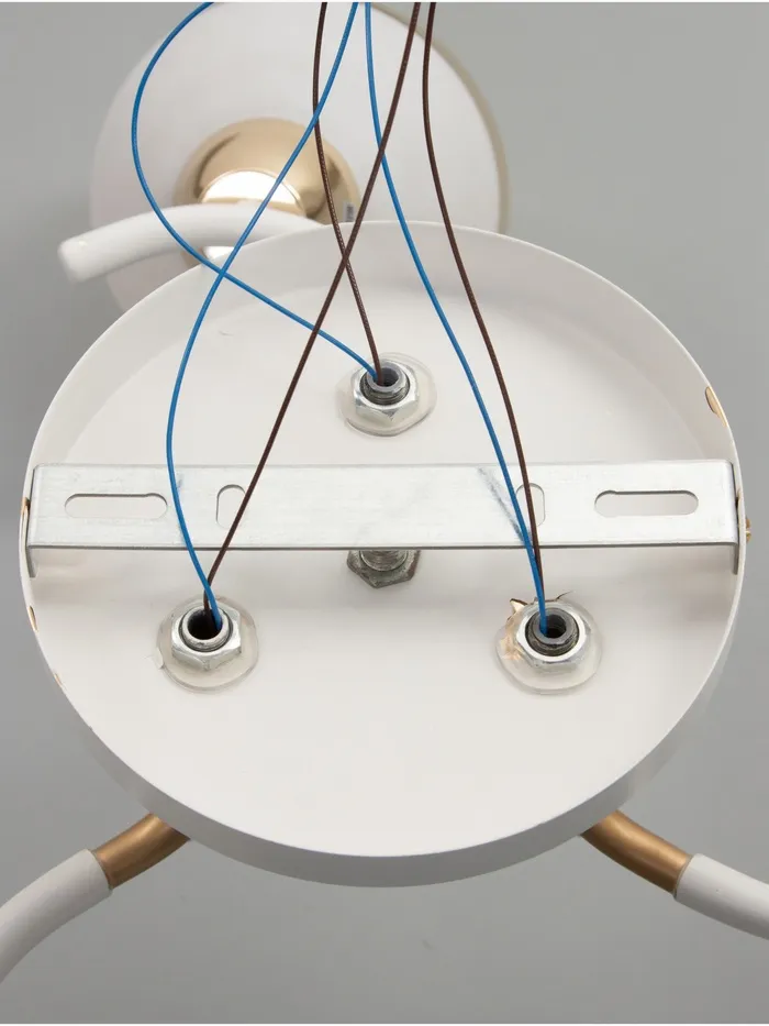 Люстра крепится к потолку за основание, что делает установку простой и удобной. Подходит для натяжных потолков (при использовании светодиодных ламп), что расширяет возможности её применения.
