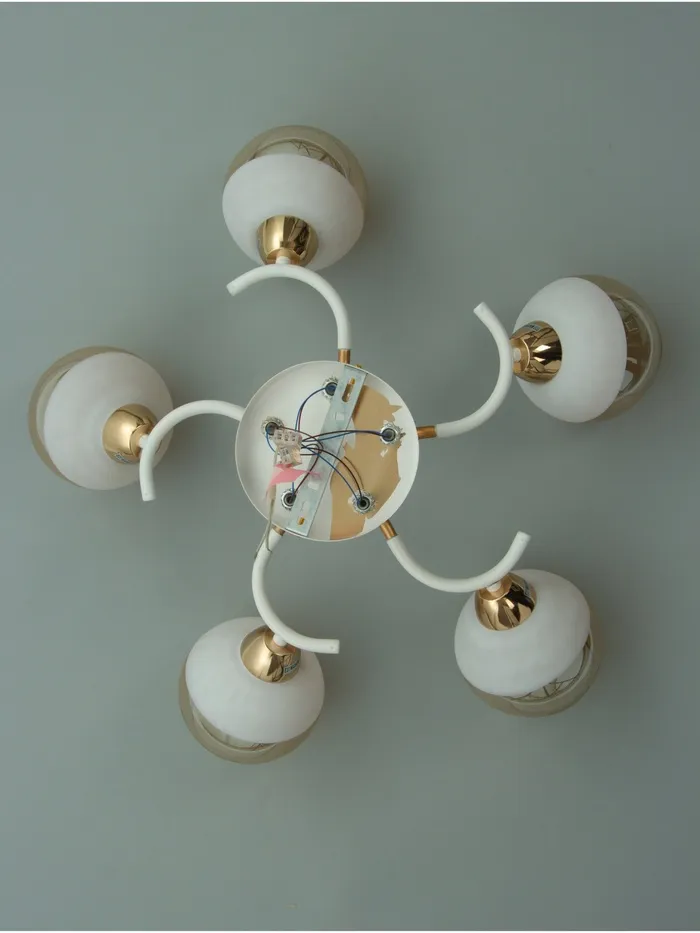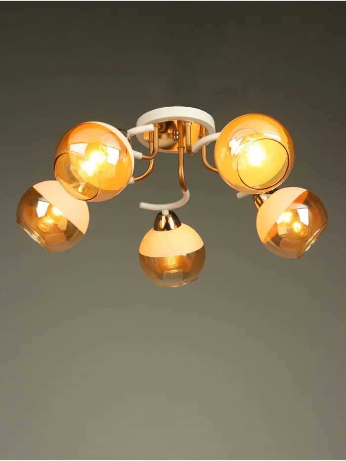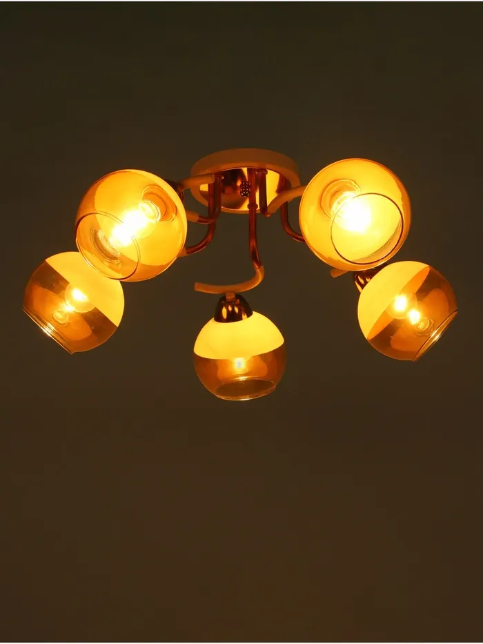 - Стеклянные плафоны: полусферическая форма плафонов добавляет изысканности и создаёт мягкое, рассеянное освещение.