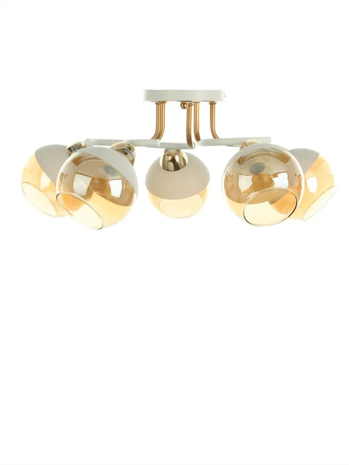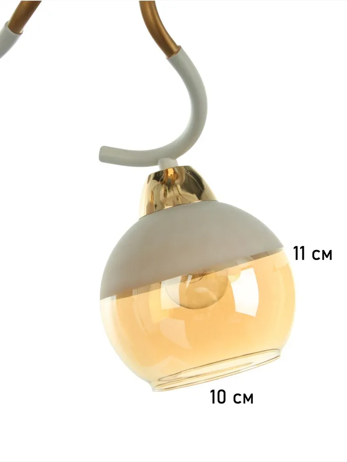 Станет изысканным дополнением вашего интерьера. Бело-золотое металлическое основание и стеклянные плафоны в форме полушара придают современный и элегантный вид, идеально подходящий для стиля хай-тэк. Размеры (51×51×22 см) позволяют легко интегрировать в любое пространство, создавая уютную атмосферу.
