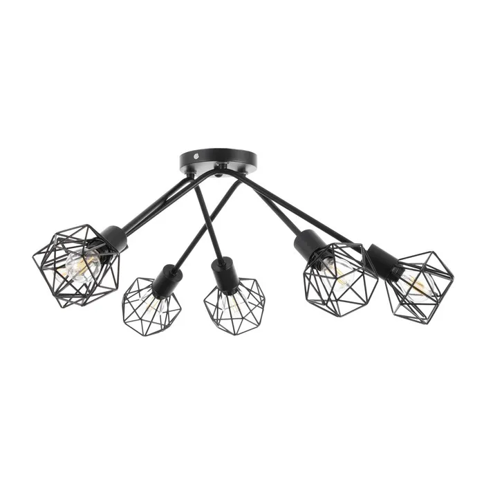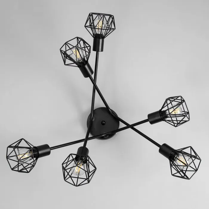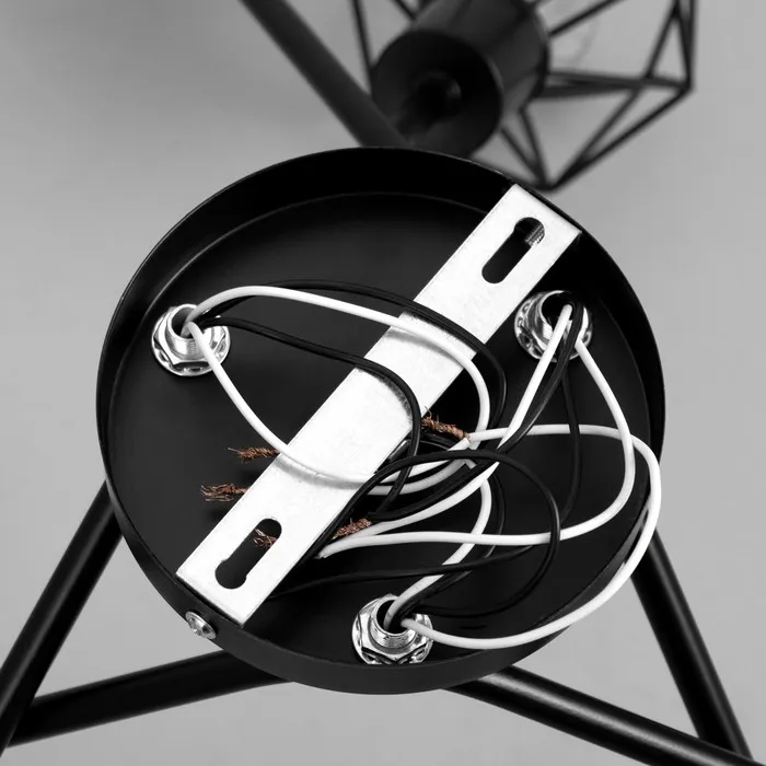Сочетание стиля, функциональности и современного дизайна. С черным основанием, металлическими плафонами в форме многогранника и лампами накаливания, станет изысканным украшением вашего интерьера, создавая атмосферу уюта и комфорта.