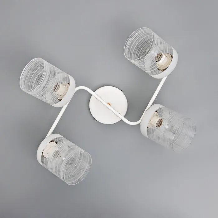 Сочетание элегантности, функциональности и современного дизайна. С бело-золотым основанием, стеклянными плафонами в форме цилиндра и лампами накаливания, станет изысканным украшением вашего интерьера, создавая атмосферу уюта и комфорта.