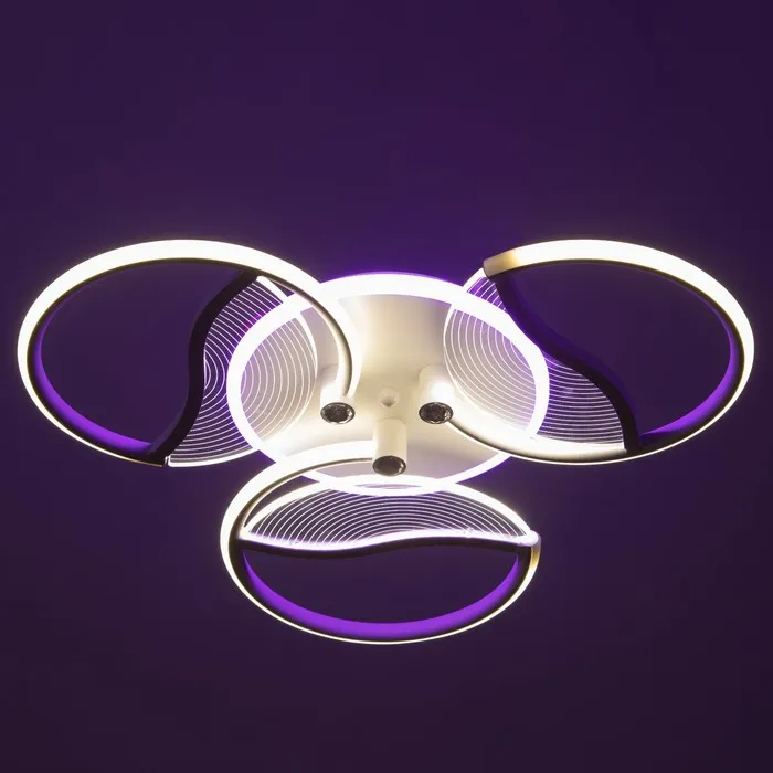 Сочетание современного стиля, функциональности и технологичности. С белым основанием, круглыми рассеивателями и встроенными RGB LED-лампами, станет центральным элементом вашего интерьера, создавая атмосферу уюта, комфорта и современности.