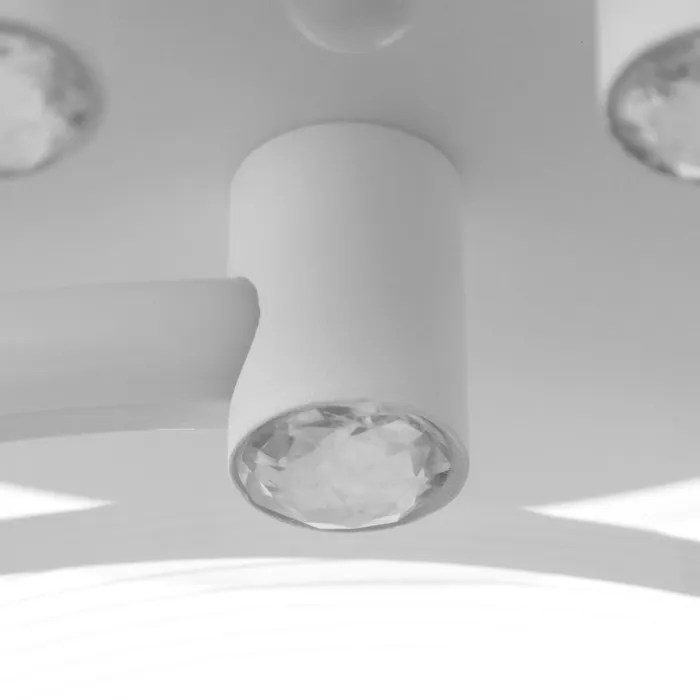 - Современный дизайн: белое основание и круглые рассеиватели из металла и акрила придают люстре стильный и дизайнерский вид, идеально подходящий для гостиных.