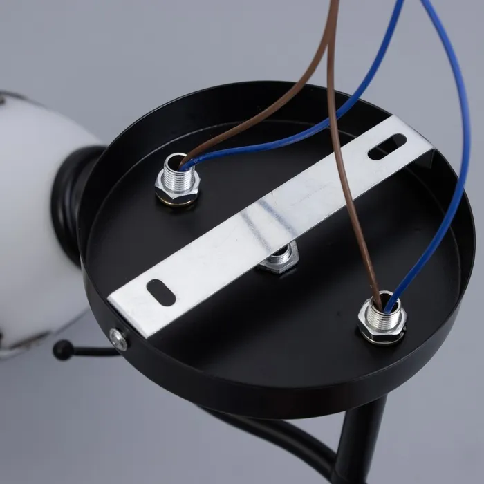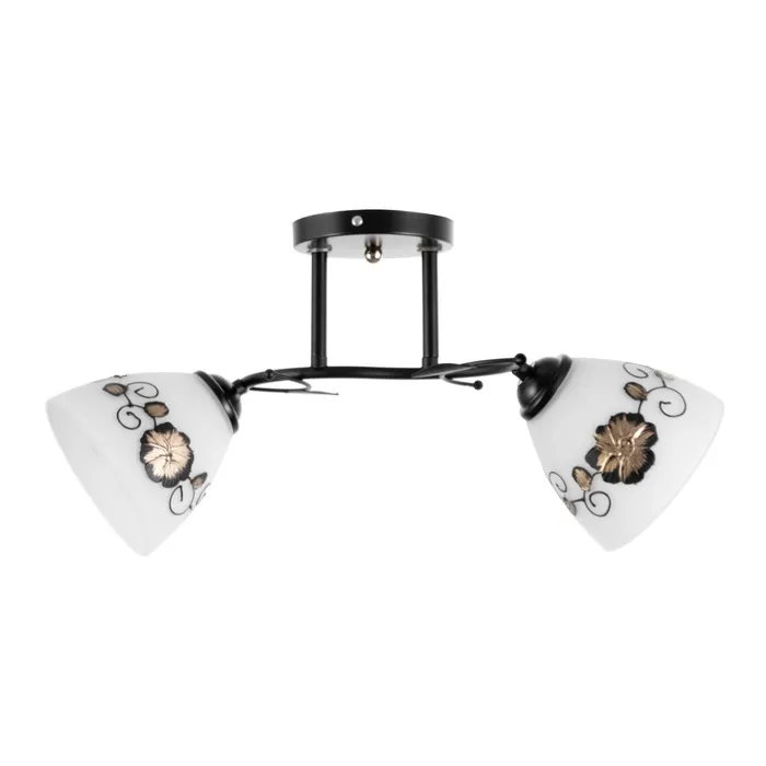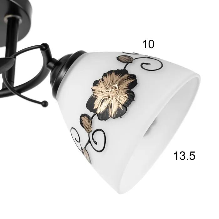 - Классический дизайн: чёрное металлическое основание и матовые белые плафоны в форме конуса с цветами добавляют интерьеру уюта и стиля.