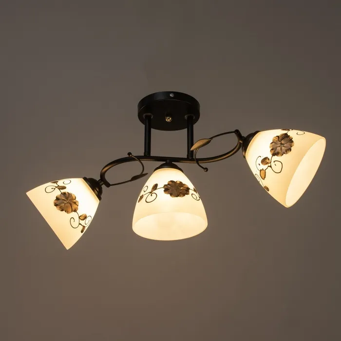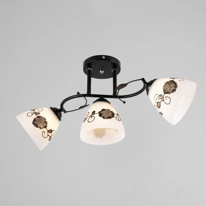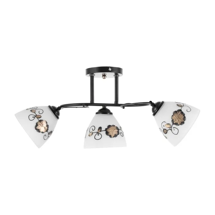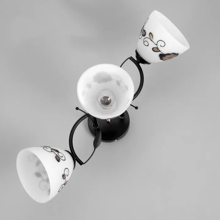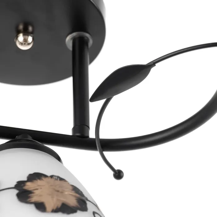 Сочетание классики и функциональности. Компактный дизайн с чёрным металлическим основанием и матовыми белыми плафонами с цветами создаёт мягкое и уютное освещение, которое подчеркнёт стиль любого помещения. Станет отличным решением для тех, кто ценит простоту и элегантность.