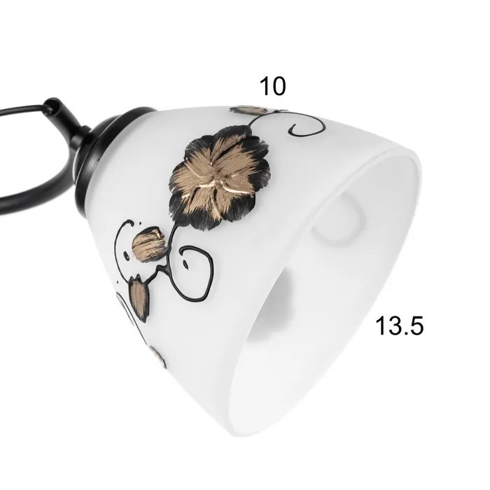 - Классический дизайн: чёрное металлическое основание и матовые белые плафоны в форме конуса с цветами добавляют интерьеру уюта и стиля.