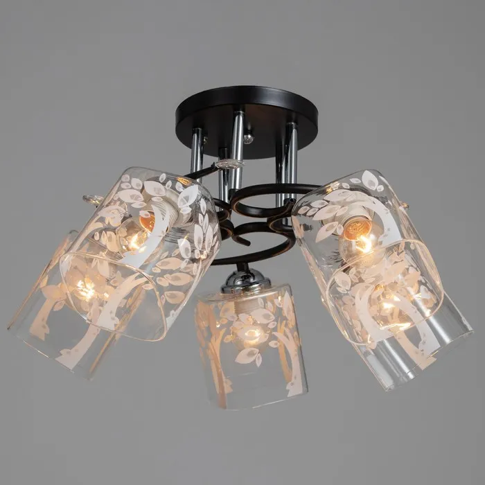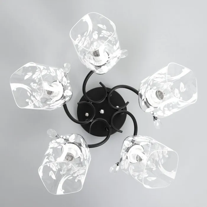 - Создания атмосферы: черное и хромированное основание и стеклянные плафоны c узором цветов помогут создать уютную и стильную обстановку.