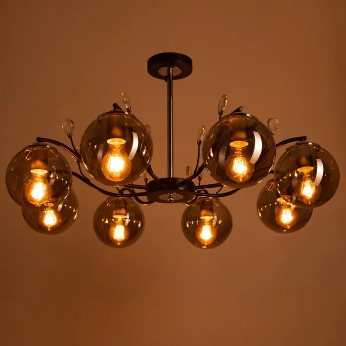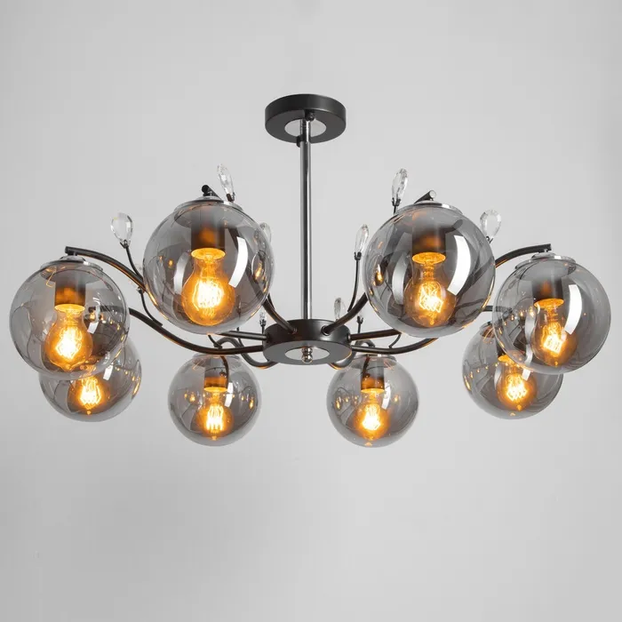- Роскошный дизайн: черно-серебристое основание и шарообразные плафоны из стекла придают люстре изысканный и современный вид, идеально подходящий для гостиных, спален и больших залов.
