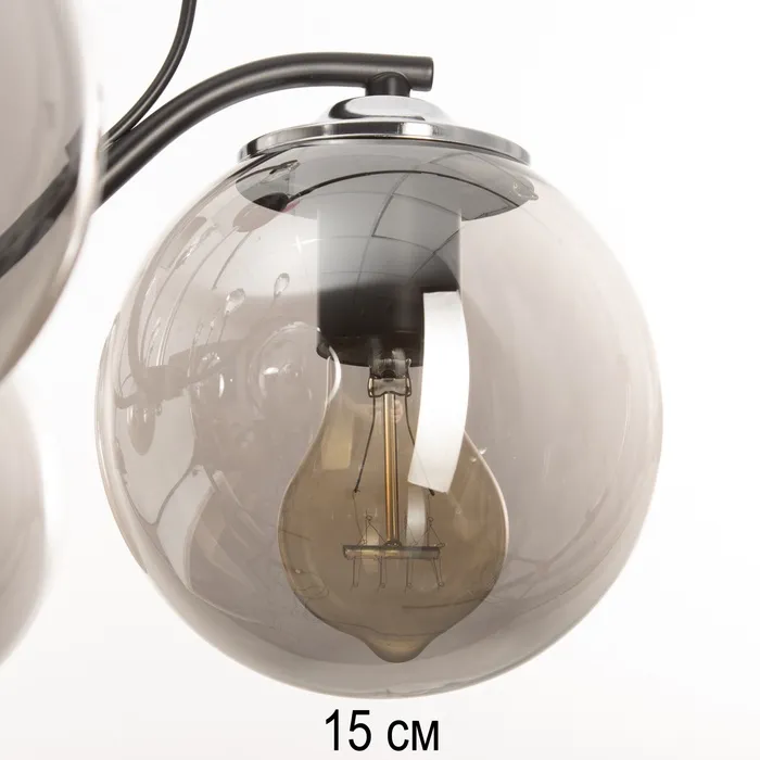 Воплощение роскоши, стиля и функциональности. С черно-серебристым основанием, стеклянными плафонами в форме шара и лампами накаливания, станет центральным элементом вашего интерьера, создавая атмосферу уюта, комфорта и элегантности.