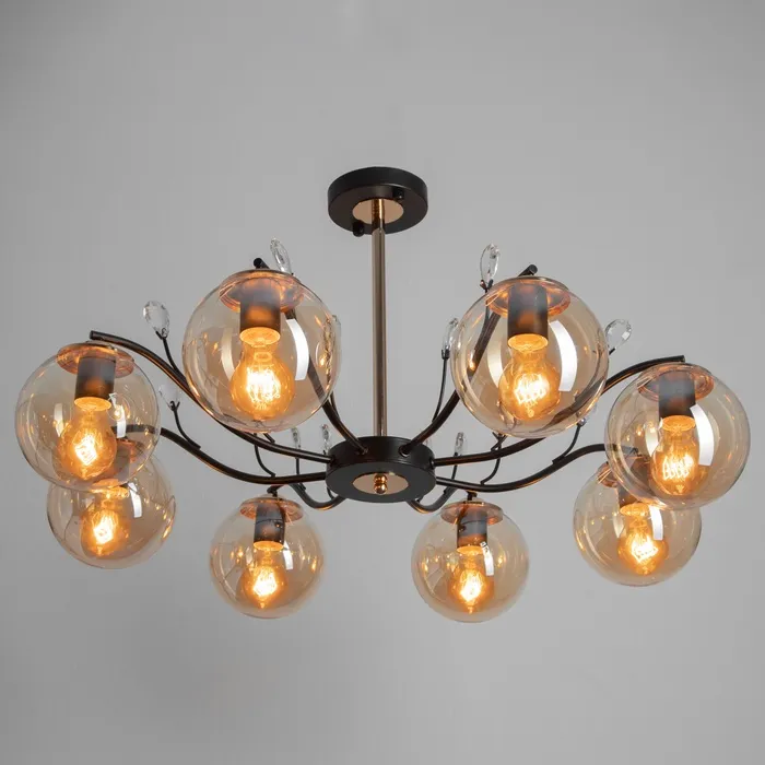 - Роскошный дизайн: черно-золотое основание и шарообразные плафоны из стекла придают люстре изысканный и современный вид, идеально подходящий для гостиных, спален и больших залов.