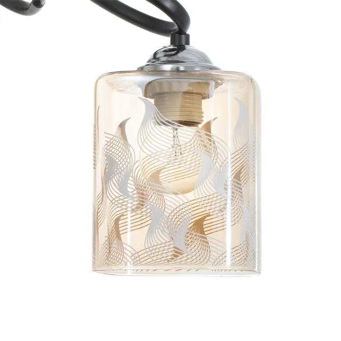 Сочетание современного минимализма и практичности. С чёрным и хромированным основанием, кввадратными плафонами из тонированного стекла с узором, люстра станет стильным акцентом в вашем интерьере, создавая комфортное и равномерное освещение.