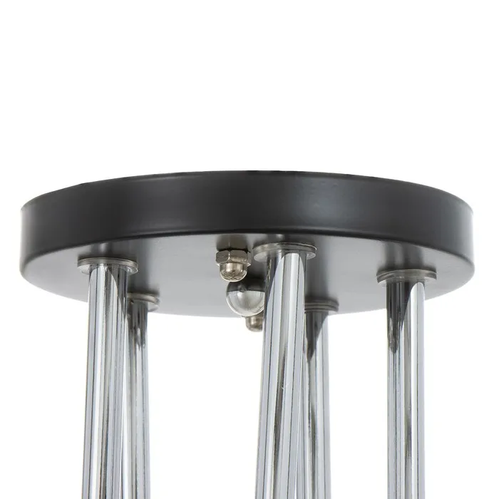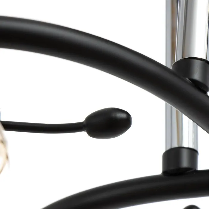 - Современный дизайн: чёрное и хромированное основание в сочетании с цветными стеклянными плафонами добавляют интерьеру изысканности и стиля.