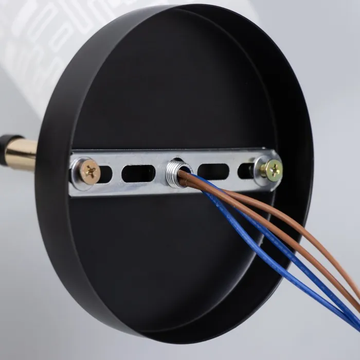 - Современный дизайн: сочетание чёрного и золотого металла с матовыми белыми плафонами в форме цилиндра добавляет интерьеру изысканности и стиля.