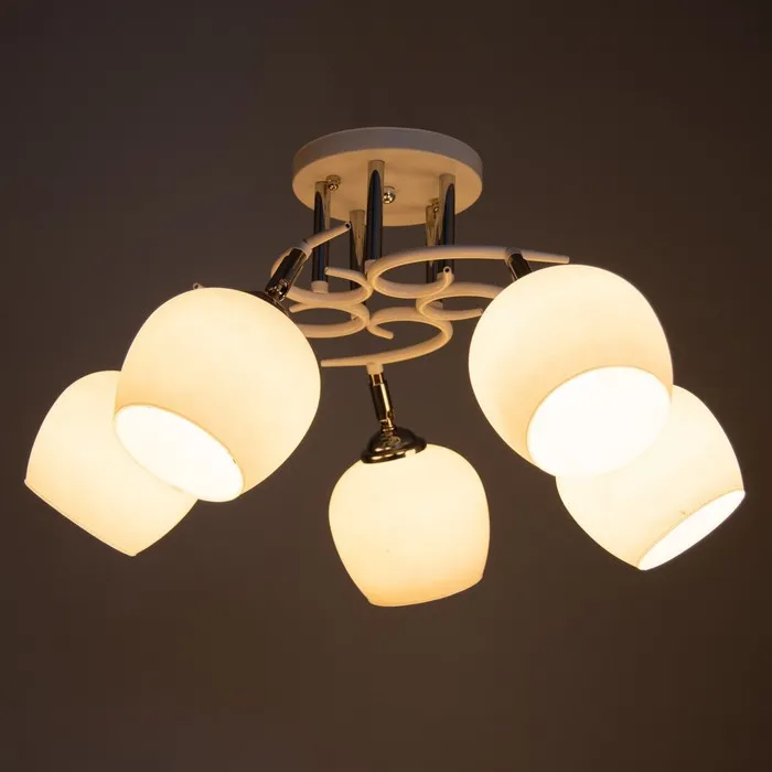 Люстра потолочная BayerLux «Ава», 5хЕ27, 40 Вт, бело-хромовый, 58×58×27 см — Характеристики