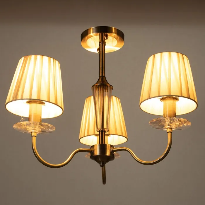 - Классический дизайн: бронзовое основание и трапециевидный абажур из текстиля придают люстре изысканный и элегантный вид, идеально подходящий для кухонь, спален, прихожих и гостиных.