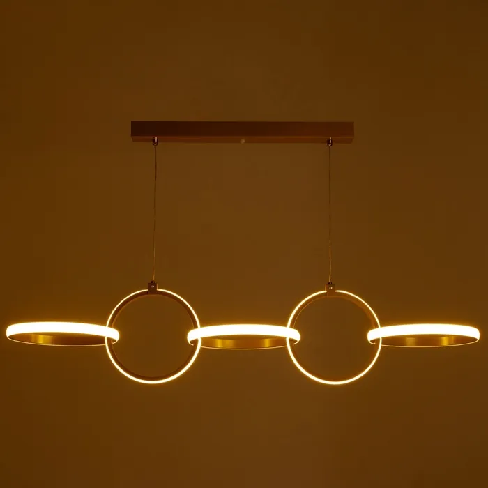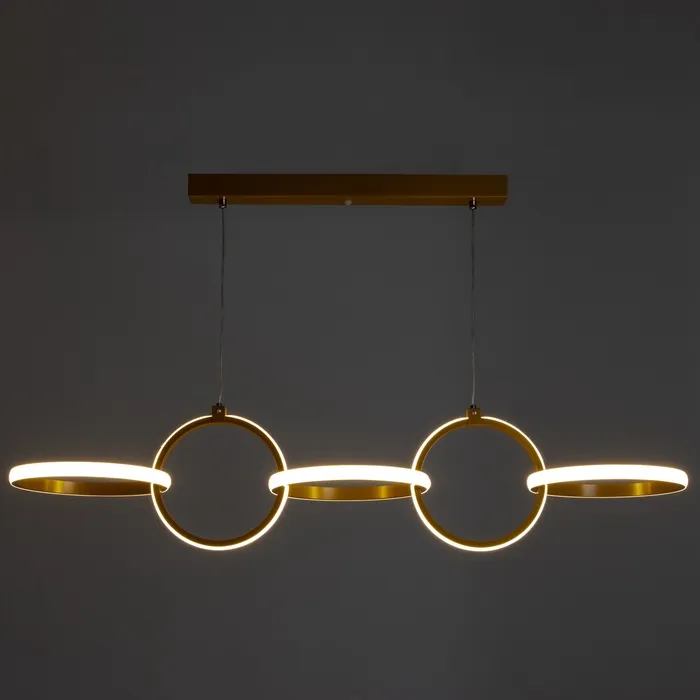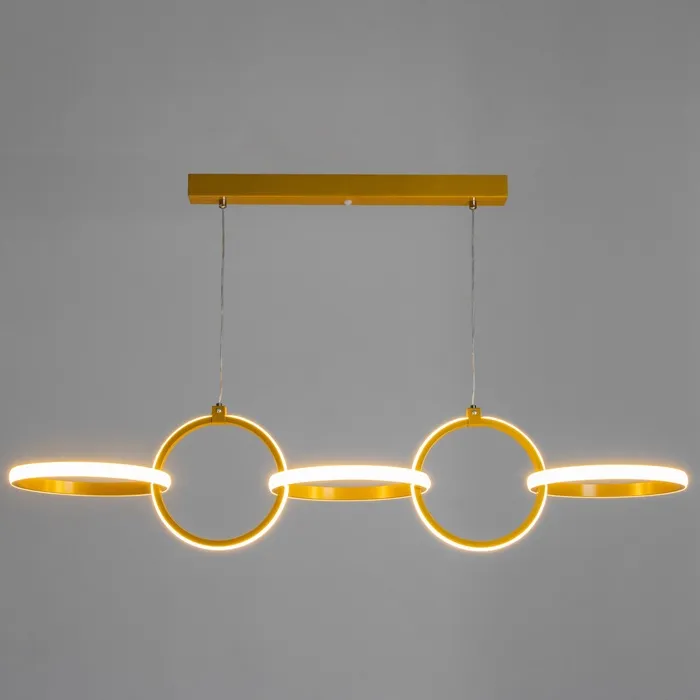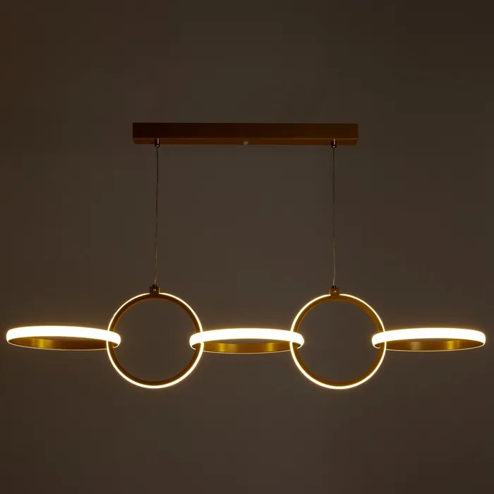 - Современный дизайн: золотое основание и форма колец придают люстре элегантный и стильный вид, идеально подходящий для кухонь, гостиных и других помещений.