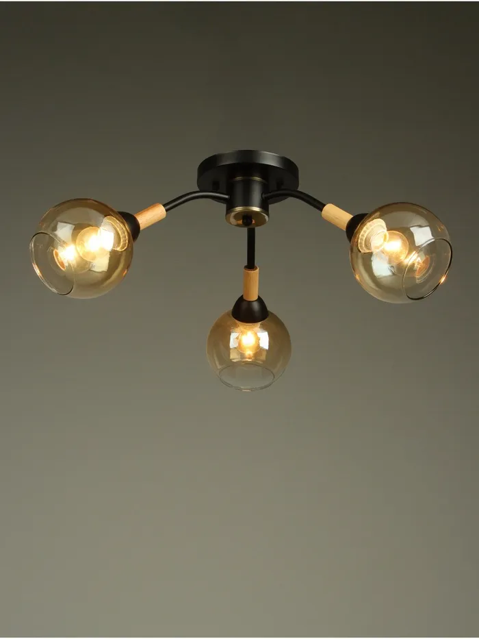 - Прозрачно-бежевый цвет плафонов: создаёт эффектный контраст с чёрным основанием, добавляя тепла и уюта.