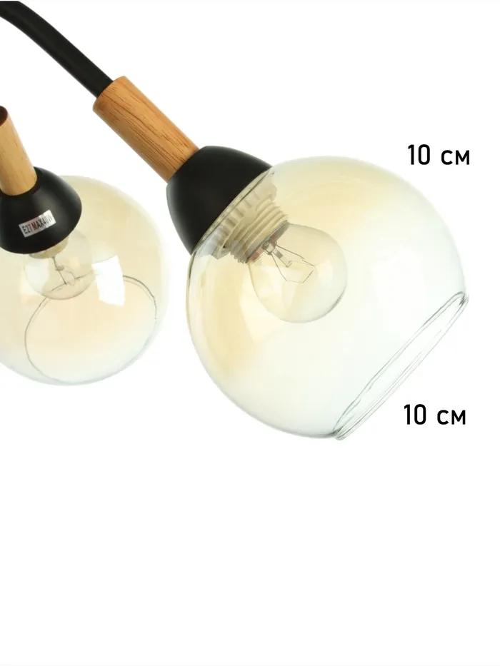 - Прозрачно-бежевый цвет плафонов: создаёт эффектный контраст с чёрным основанием, добавляя тепла и уюта.