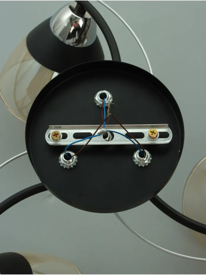 - Чёрное основание с хромированными акцентами: придаёт люстре благородный и современный вид, идеально сочетаясь с интерьерами в стиле хай-тэк.