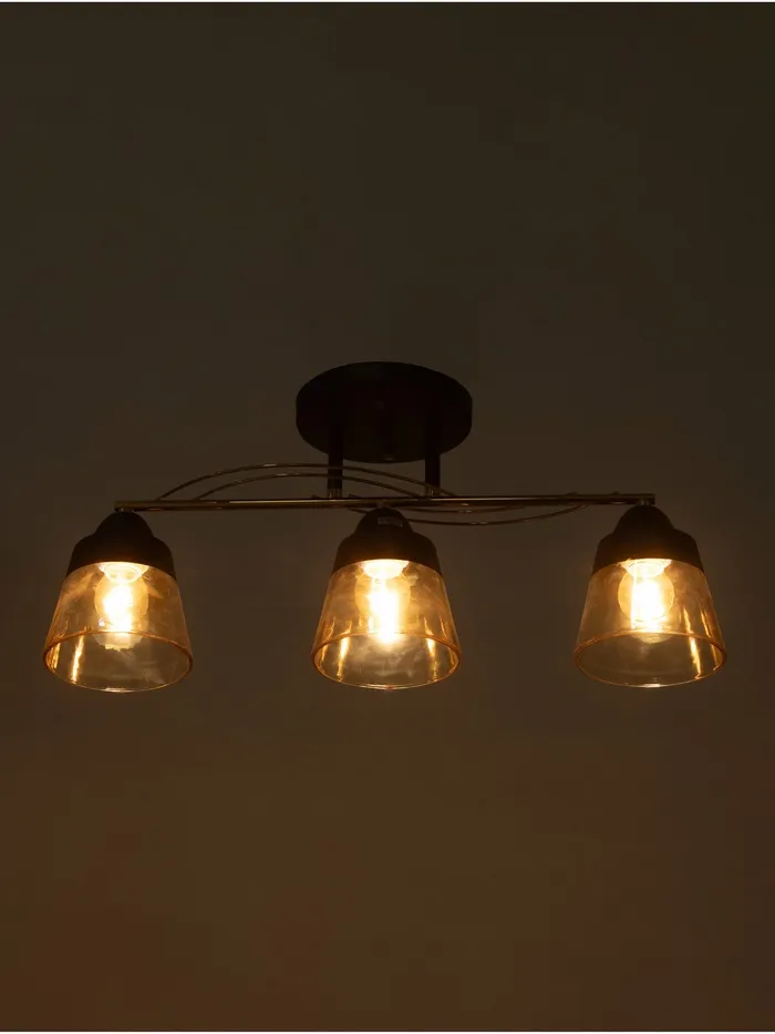 - Тонированные плафоны с черным ободком: создают игру света и тени, добавляя глубину и теплоту освещению.