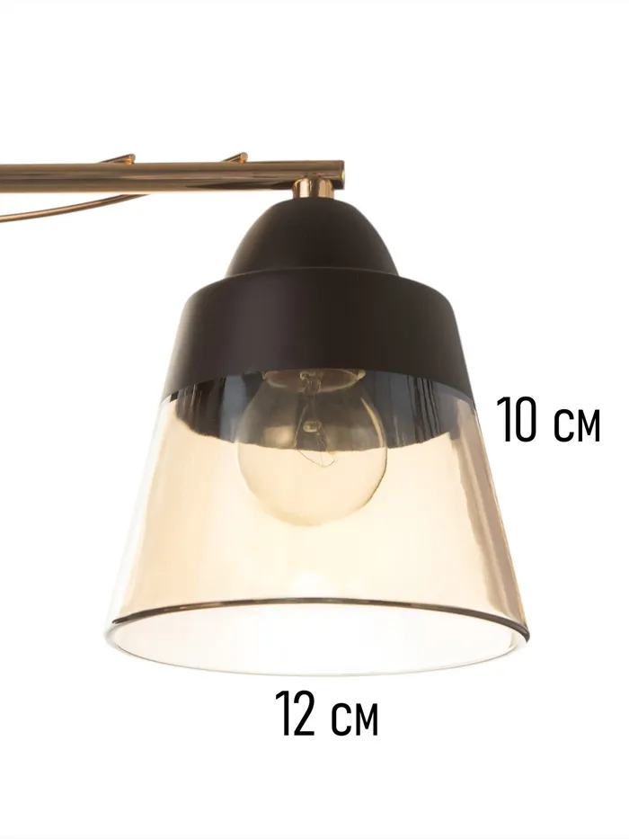 Станет изысканным дополнением вашего интерьера. Чёрное металлическое основание с золотыми акцентами и стеклянные плафоны в форме трапеции придают современный и элегантный вид, идеально подходящий для стиля хай-тэк. Размеры (41×15×23 см) позволяют легко интегрировать в любое пространство, создавая уютную атмосферу.