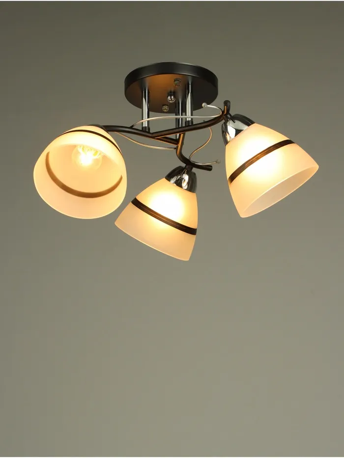 Люстра крепится к потолку за основание, что делает установку простой и удобной. Подходит для натяжных потолков (при использовании светодиодных ламп), что расширяет возможности применения.