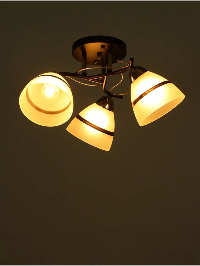 Люстра оснащена тремя лампами накаливания мощностью 40 Вт с цоколем E27, что обеспечивает яркое и равномерное освещение. Площадь освещения составляет 4 м², что делает идеальной для прихожих и коридоров. Степень защиты IP20 делает безопасной для использования в сухих помещениях.