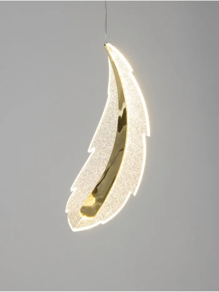 Познакомьтесь с люстрой потолочной Therese — воплощением дизайнерского искусства и современных технологий. Модель в виде пера, выполненная в золотом цвете, обладает изысканным стилем, который добавляет нотки роскоши и элегантности в любой интерьер. Люстра станет центральным элементом декора в кухне, прихожей или других универсальных зонах, создавая уютную и привлекательную атмосферу.