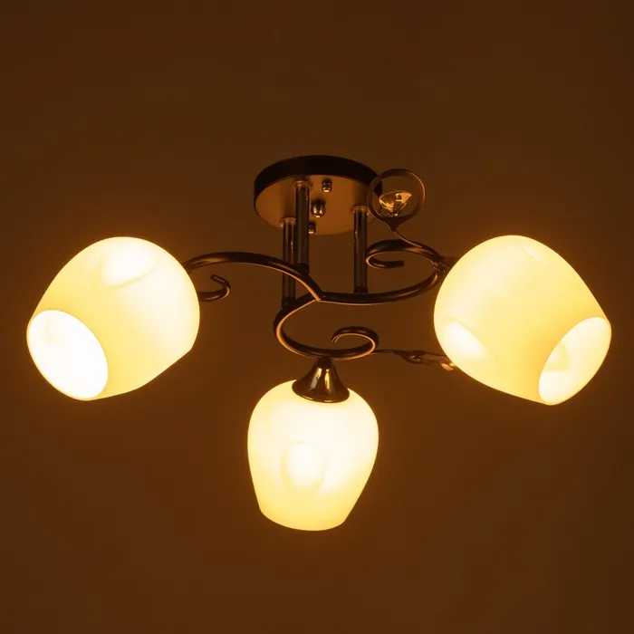 - Матовые белые плафоны из стекла обеспечивают равномерное рассеивание света без бликов.