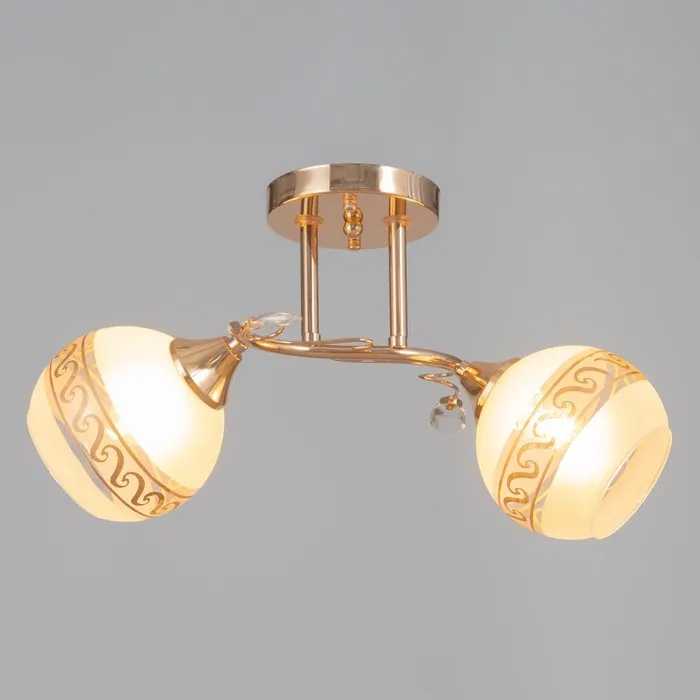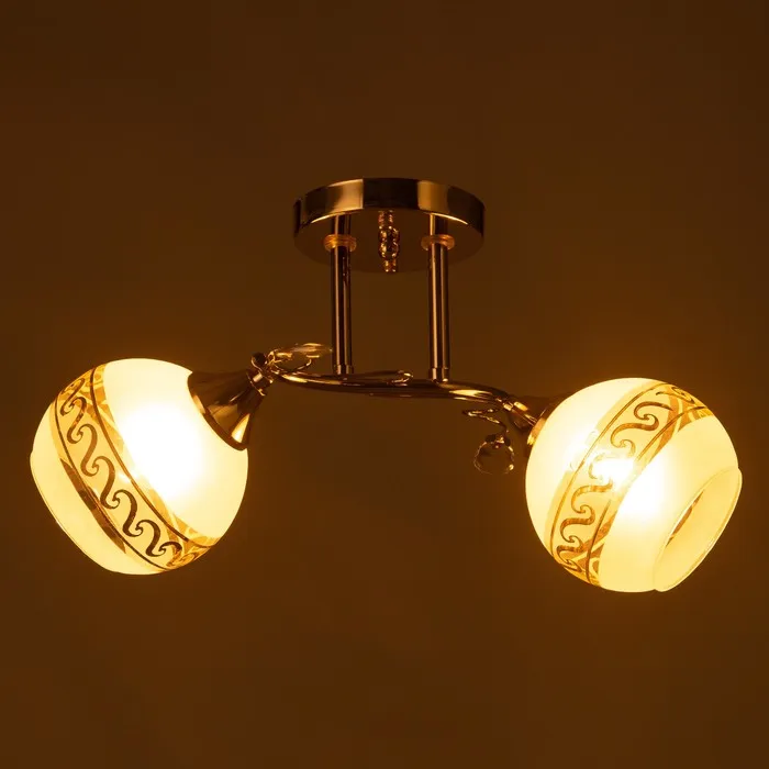 Свет, который добавляет интерьеру благородства и уюта! Потолочная люстра с двумя лампами, золотым каркасом и белыми стеклянными плафонами — это простое, но стильное освещение для гостиной или спальни. Золото в сочетании с матовым белым цветом легко вписывается в классический и современный дизайн. Подходит для помещений площадью до 8 м².