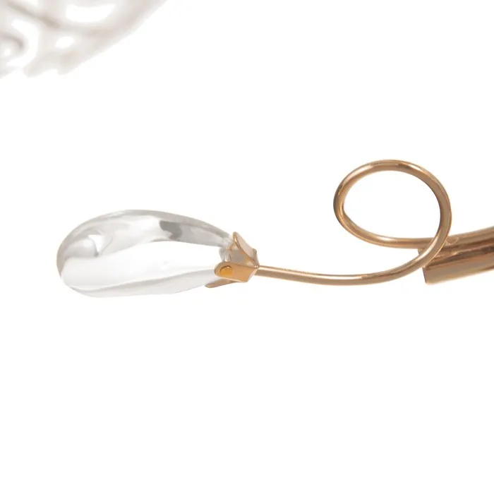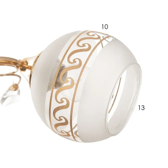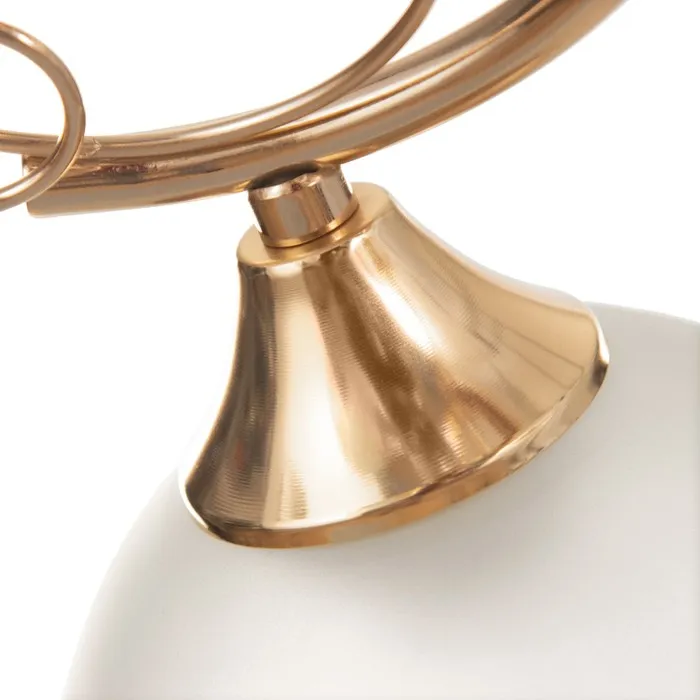 - Компактные размеры (40×18×20 см): Легко помещается даже в небольших помещениях. Не занимает много места, но остаётся заметным элементом дизайна за счёт контраста золотого каркаса и белых плафонов.