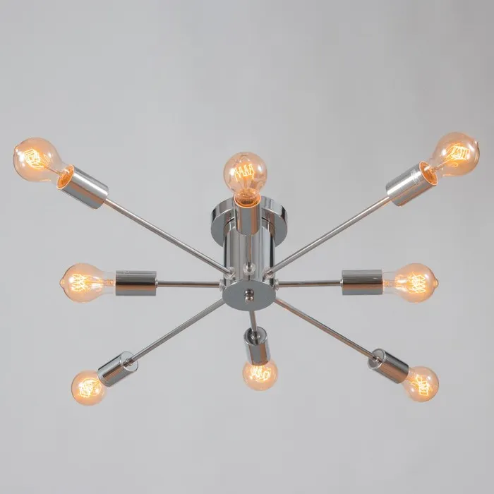 Станет стильным решением для освещения просторных помещений, таких как гостиные, рестораны или магазины. Восьмиламповое исполнение обеспечивает яркое и равномерное освещение пространства.