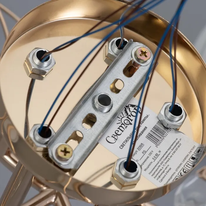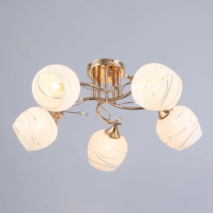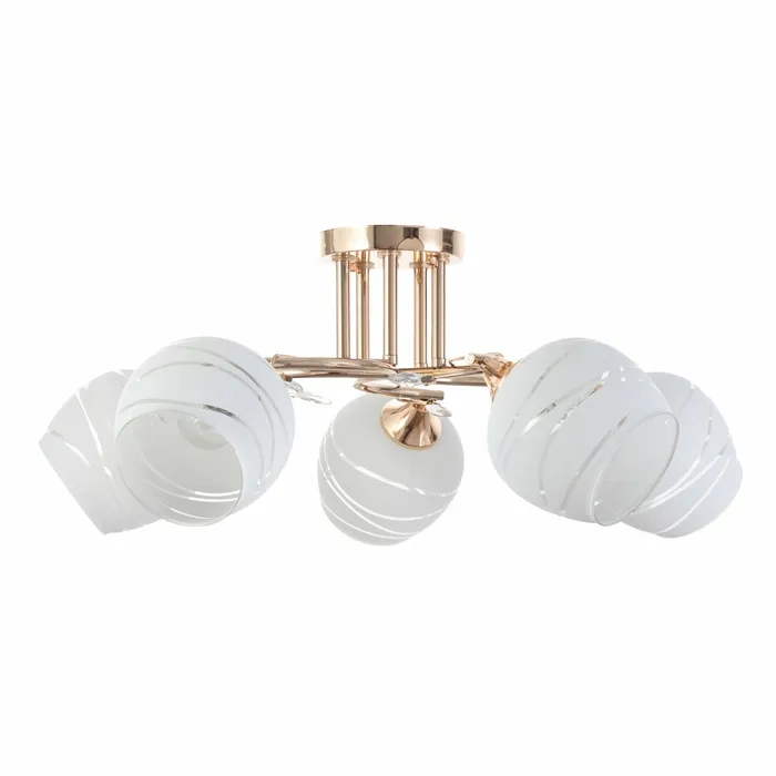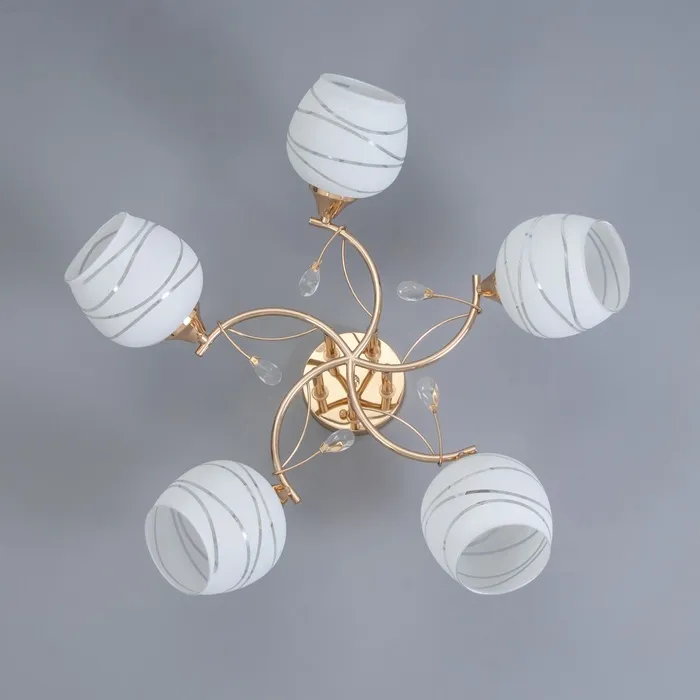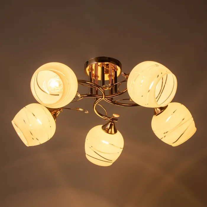 Благодаря продуманному дизайну, люстра сочетает в себе функциональность и эстетику. Металлическое золотое основание сохраняет презентабельный внешний вид долгие годы. Матовые стеклянные плафоны легко очищаются от пыли, облегчая уход за светильником.
