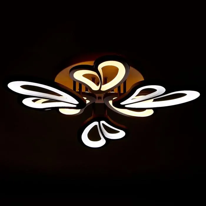 Светодиодный светильник с пультом выполнен в современном стиле. Модная и стильная люстра подойдёт для интерьера детской, гостиной, зала, спальни, прихожей или кухни. С помощью пульта можно плавно регулировать температуру света — от 3 000 до 6 000 К; и яркость — от ночника до полной мощности свечения. Батарейки в комплект не входят.