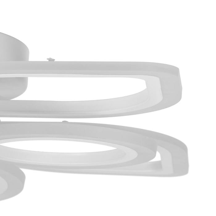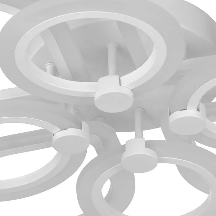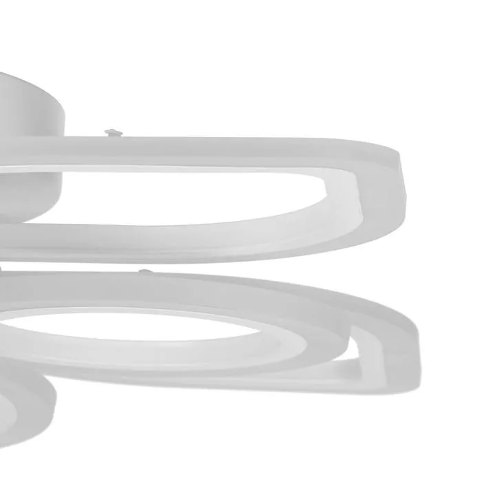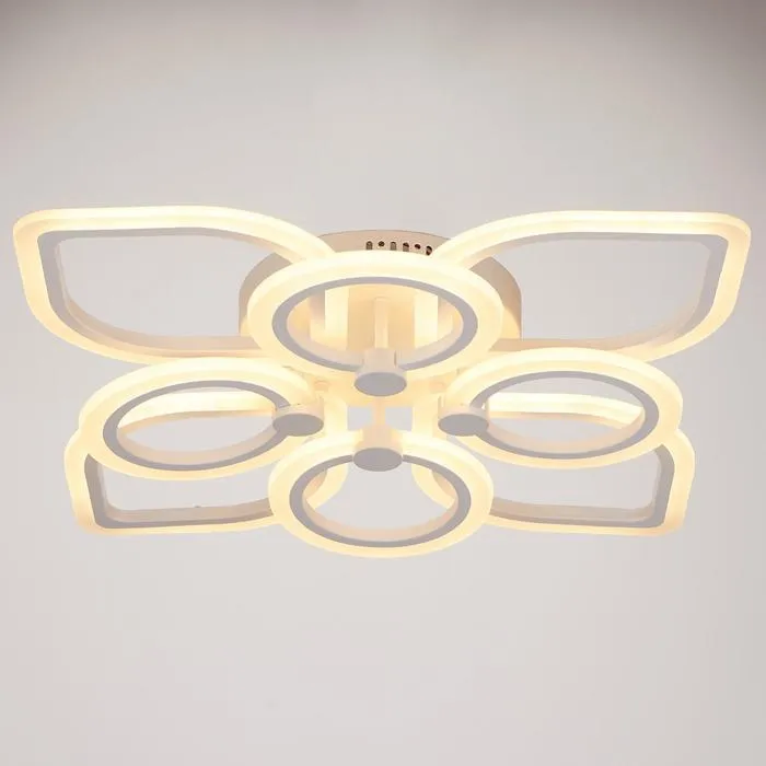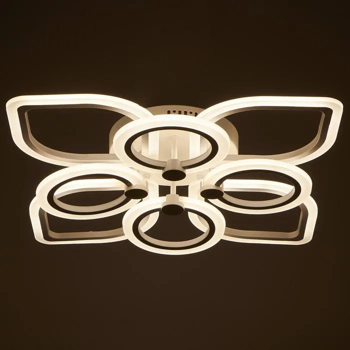 Изделие выполнено из качественного акрила, металла и светодиодов. Срок службы люстры в домашних условиях — 20 000 часов. Подходит для помещений с низкими потолками и для натяжных потолков. Осветит комнату площадью до 20 м².