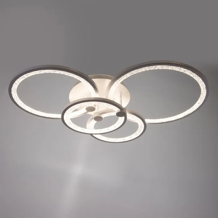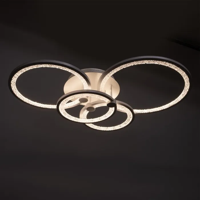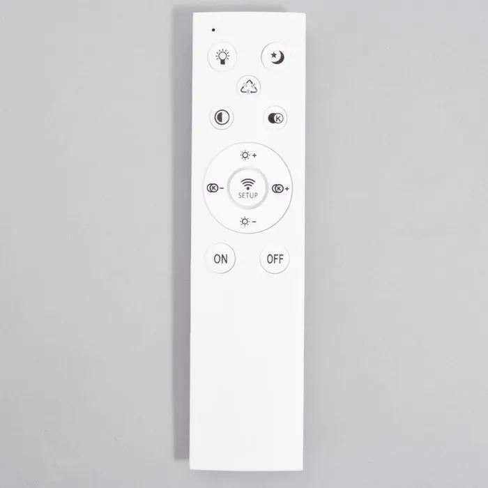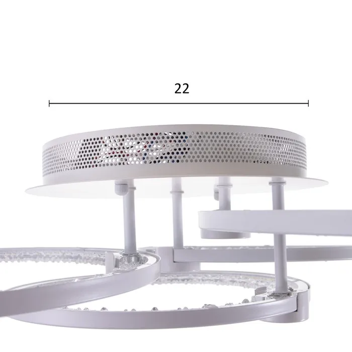 Светодиодный светильник с пультом выполнен в современном стиле. Модная и стильная люстра подойдёт для интерьера детской, гостиной, зала, спальни, прихожей или кухни. С помощью пульта можно плавно регулировать температуру света — от 3 000 до 6 000 К; и яркость — от ночника до полной мощности свечения. Батарейки в комплект не входят.