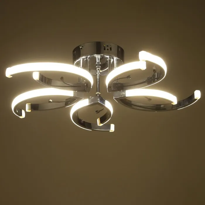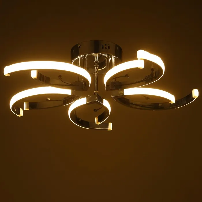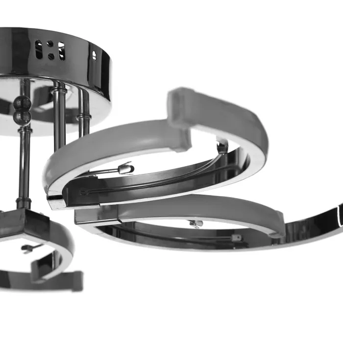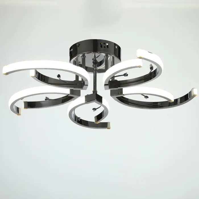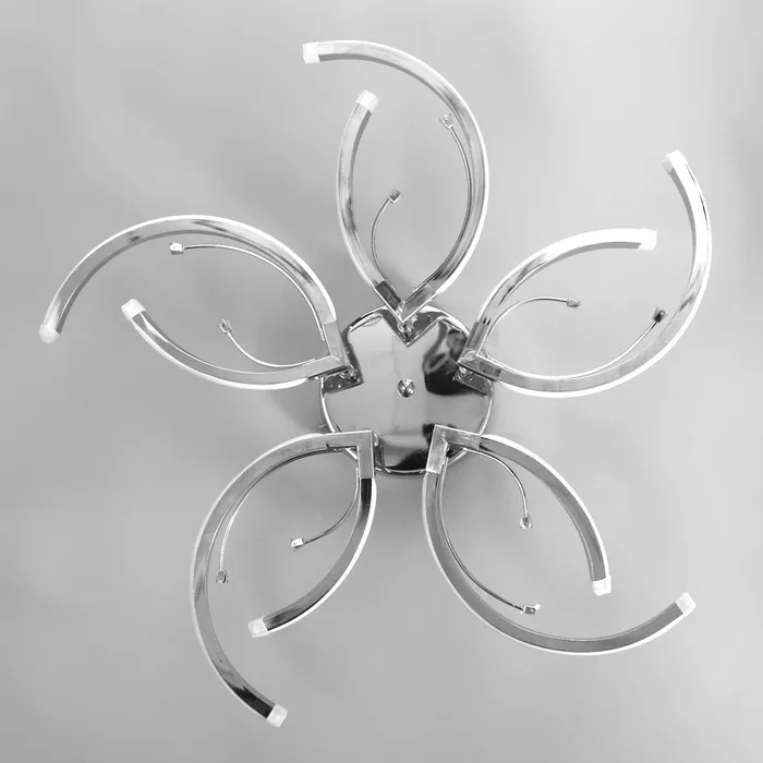 Изделие выполнено из качественного металла, силикона и светодиодов. Срок службы люстры в домашних условиях — 20 000 часов. Подходит для помещений с низкими потолками и для натяжных потолков. Осветит комнату площадью до 7 м².