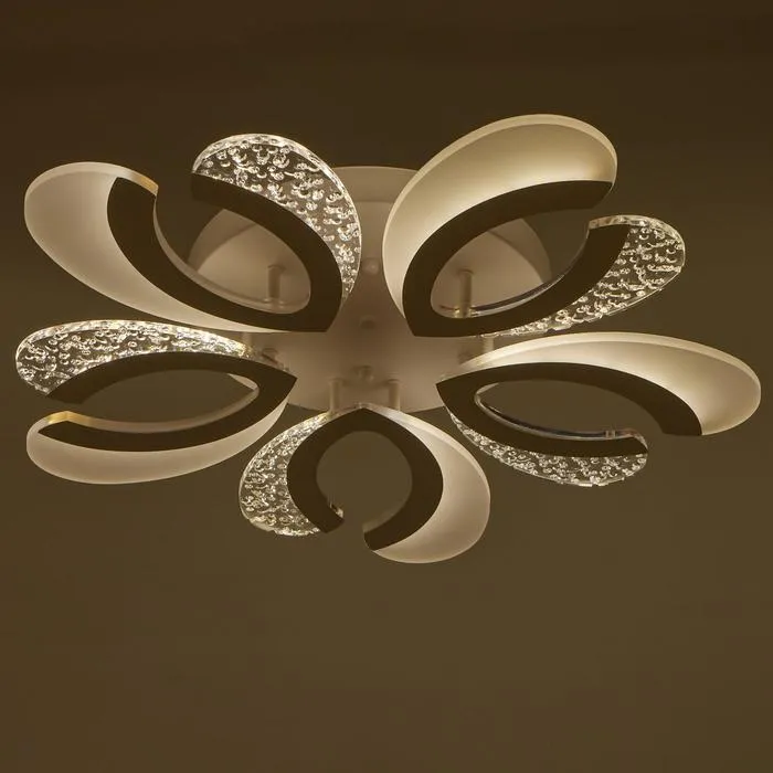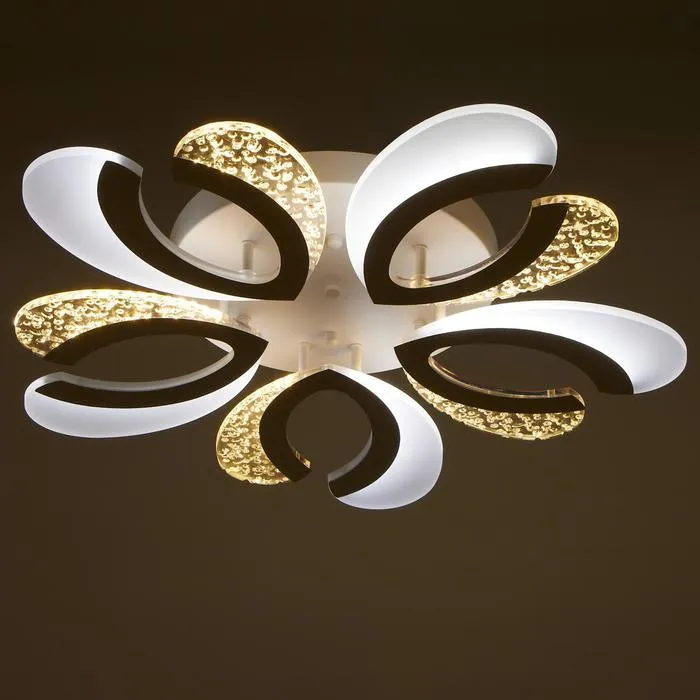 Светодиодная потолочная люстра «Соррненто» дополнит интерьер комнаты или кухни в стиле модерн площадью до 10 м². Светильник имеет акриловые вставки-рассеиватели двух видов: матовые и с пузырьками. Геометрия самой люстры позволяет разместить её в помещении с низкими потолками.