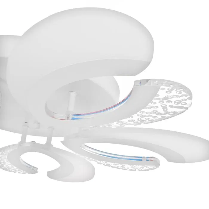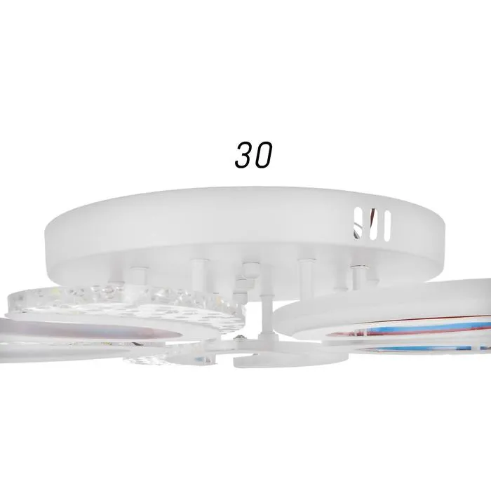 Светильник имеет 3 режима свечения: холодный (6 000 К — 23 Вт), тёплый (3 000 К — 23 Вт) и одновременно тёплый с холодным (4 000 К — 45 Вт). Есть диммируемый пульт. Подходит для установки на натяжные потолки.