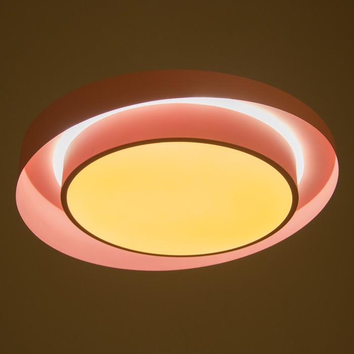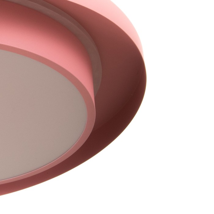 Розовый свет — под контролем с дивана! Потолочная люстра BayerLux «Зефир» — плоская, круглая LED-модель с пультом дистанционного управления и розовым металлическим основанием. Высота всего 10 см, диаметр — 50 см, а световой поток достигает 14 400 лм, что достаточно для освещения пространства до 24 м². Идеально подходит для спальни, гостиной, прихожей или даже балкона.