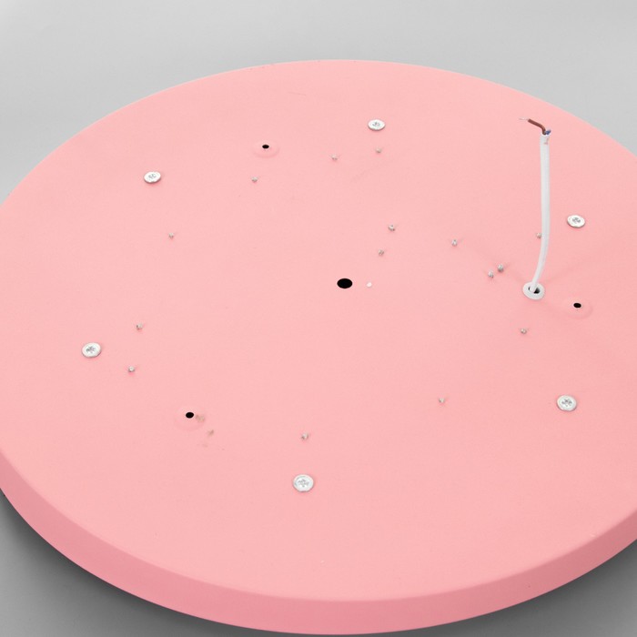 - Плоский дизайн в розовом цвете: Отсутствие плафонов и тонкий профиль (всего 10 см) делают люстру почти невесомой визуально. Розовое основание добавляет интерьеру мягкости — подходит для детских, спален в скандинавском стиле или современных лофт-пространств.