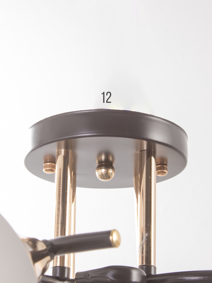 - Арт-деко без излишеств: Сочетание кофейного и золотого — отсылка к эстетике 1920–30-х, где важны благородные оттенки и геометрия форм. Люстра не перегружена деталями, но сразу задаёт тон интерьеру: она уместна в пространствах с бархатной мебелью, мраморными поверхностями или тёплой древесиной.