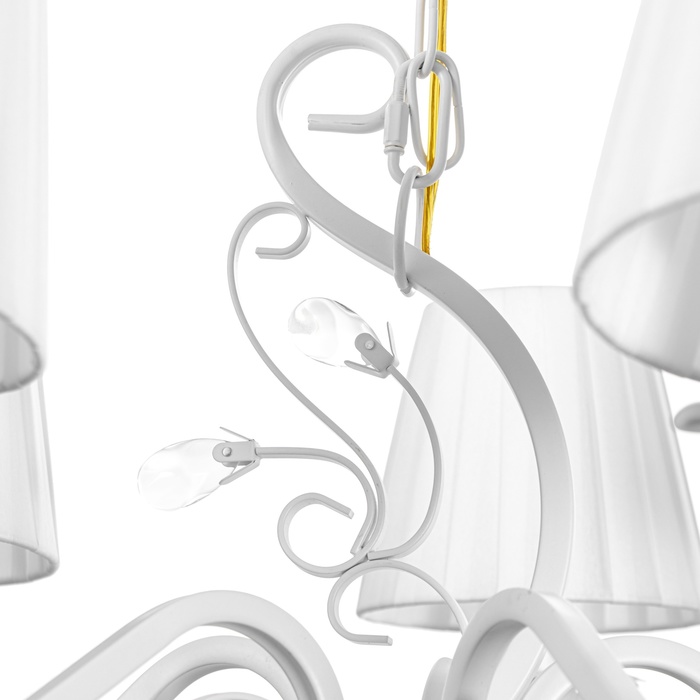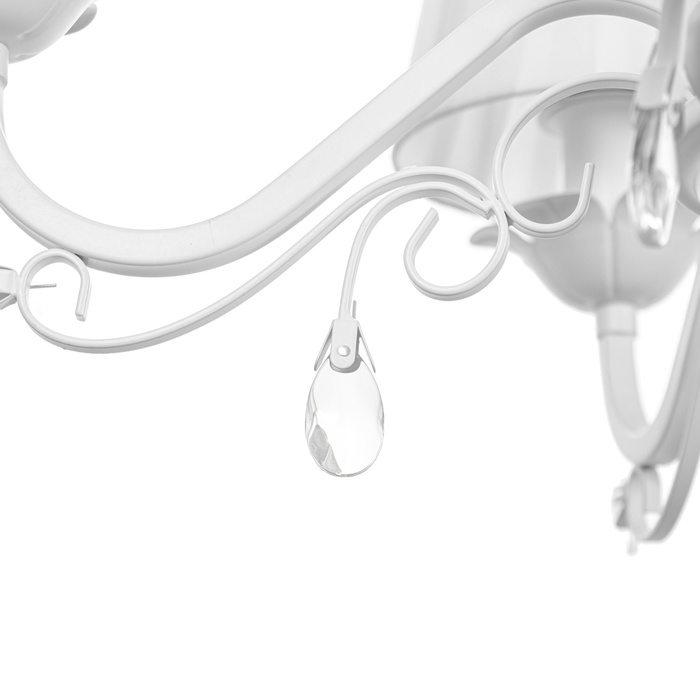 - Классический дизайн: Металлическое основание белого цвета и цепной подвес соответствуют стилям «классика» и «прованс». Люстра становится органичным элементом интерьера спальни, гостиной, кухни или прихожей.