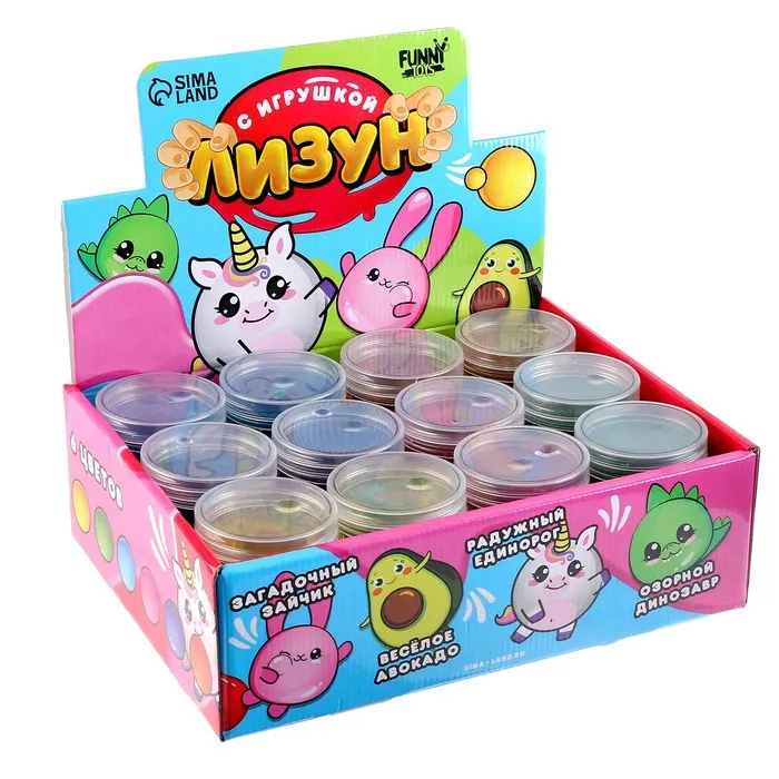 • Внутри лизуна находиться игрушка: её можно достать и играть ей отдельно.