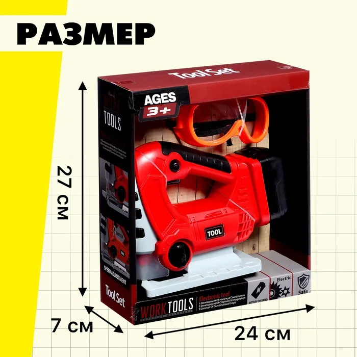 Ваш ребёнок мечтает о собственном наборе инструментов и хочет почувствовать себя настоящим мастером? Детский лобзик «Профи» – это игрушечный электроинструмент с реалистичным дизайном, который работает от батареек. В комплекте также идут защитные очки, чтобы ребёнок мог полностью погрузиться в игру, соблюдая «правила безопасности»!