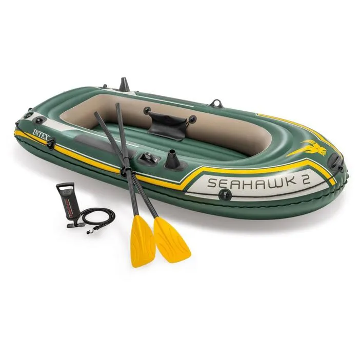 Материал лодки Intex Seahawk- качественный трехслойный полихлорвинил "Super Tough", первый и третий слой-винил высокой прочности, второй слой - сетчатый полиэстер. Благодаря этому трёхслойному компоненту прочность лодки Intex Seahawk не зависит от воздействия агрессивной среды: бензина, морской воды, машинного масла. Материал также хорошо себя чувствует при смене температур (плюсовых). Армированная ткань достигает толщины 0,50 мм.