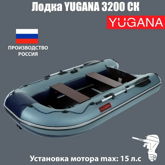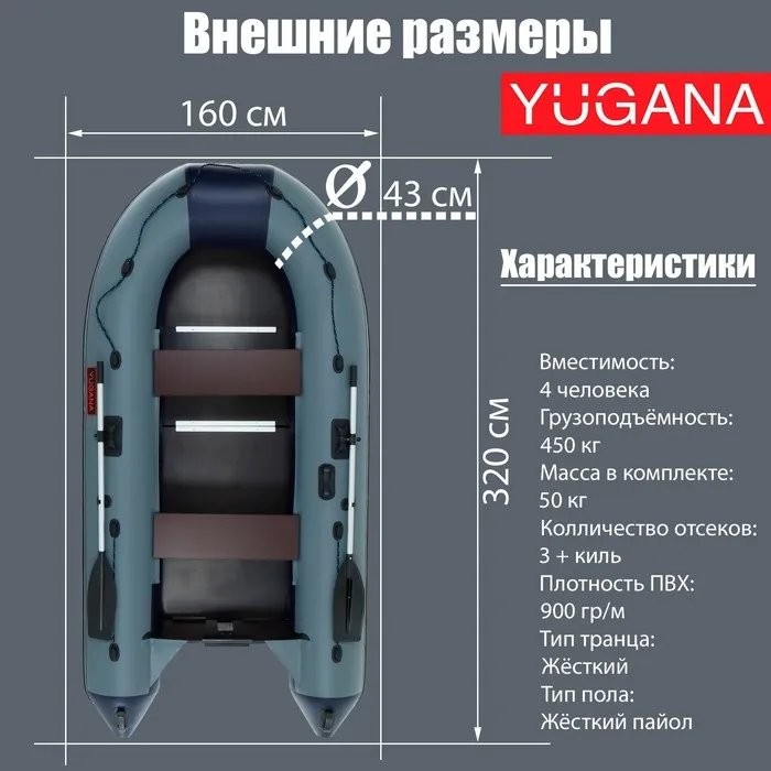 Лодка YUGANA 3200 СК, слань+киль, цвет серый/синий — Характеристики