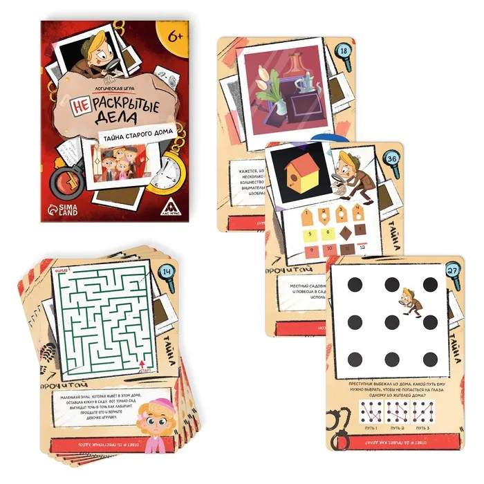 Задания в карточках не связаны друг с другом, поэтому вы можете решать их в любом порядке. Главное — подготовить ручку или карандаш. Какие задания ждут в игре? Словесные шифры и головоломки, ребусы, логические последовательности, графические диктанты, математические задачки, судоку, лабиринты и многое другое.