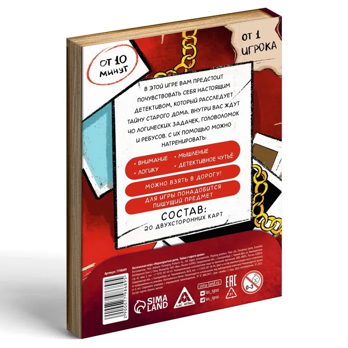 В этой игре вам предстоит примерить на себя роль детектива, который расследует тайну старого дома. Внутри вас ждёт почти 40 логических задачек, головоломок и ребусов. С их помощью можно натренировать внимание, логику, мышление и детективное чутьё.